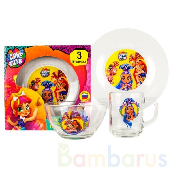 Набор детской стеклянной посуды «Cave Club» ТМ «УМка» непременно порадует вашу принцессу: - в наборе 3 предмета: кружка, салатник, тарелка- яркое оформление- безопасная и прочная- можно мыть в посудомоечной машине Собственная посуда с изображением любимых героинь непременно понравится малышке. С т…