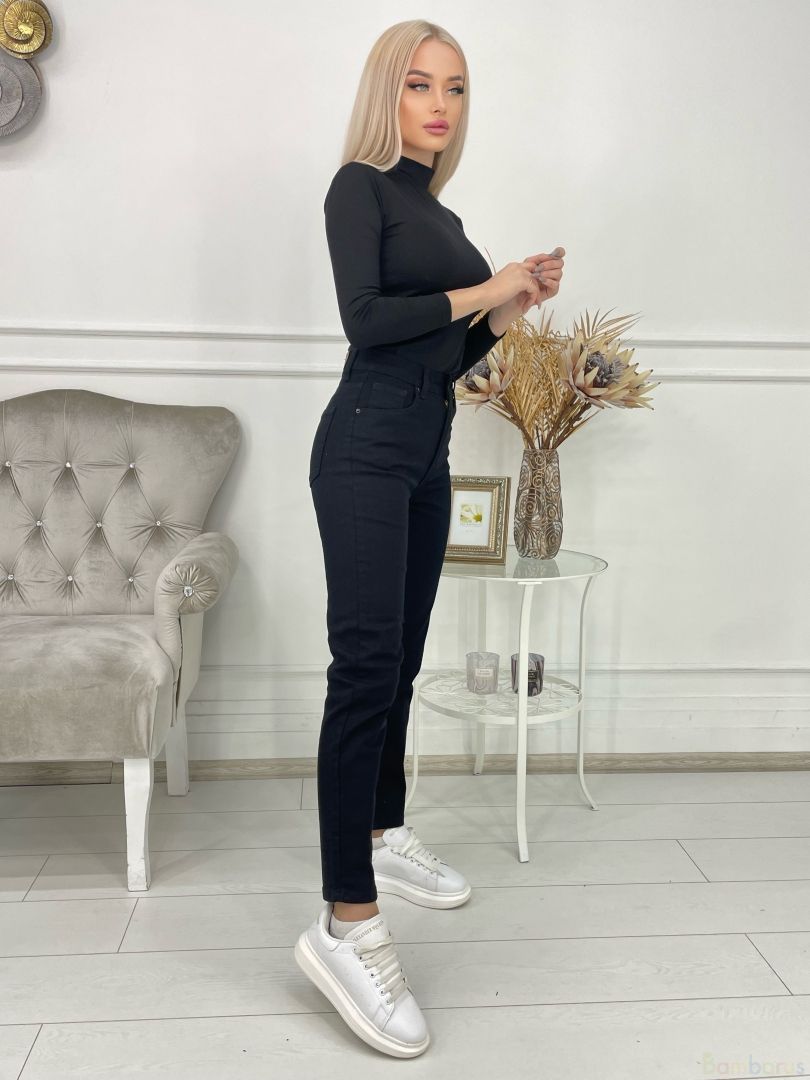 Черный женские джинсы mom с лайкрой высокого качества.