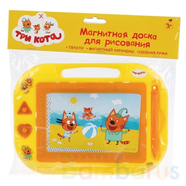 Магнитная доска для рисования «Три кота» ТМ «Играем вместе» - отличный подарок для маленьких художников:- 2 магнитные печати разной формы- магнитный карандаш- удобная ручкаНа магнитной доске с изображением персонажей любимого мультсериала рисовать ещё интереснее. Нарисованное можно без труда стерет…