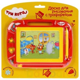 Магнитная доска для рисования «Три кота» ТМ «Играем вместе» порадует любознайку комплектацией, дизайном, функциями:
