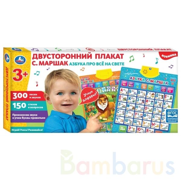 Двусторонний обучающий плакат 4 в 1 «С. Маршак. Азбука про всё на свете» ТМ «УМка» порадует вашего ребенка красочным дизайном и своим функционалом: