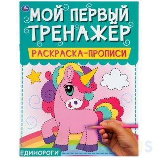 Раскраска-прописи «Мой первый тренажёр. Единороги» ТМ «УМка» приглашает малышей порисовать:
