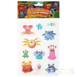 Ребёнок с удовольствием будет клеить гелевые наклейки с изображением весёлых монстриков на любые гладкие поверхности, такие как, например, стекло, зеркало, двери, холодильник и т.п. Они не оставляют следов, их можно повторно переклеивать не один раз. Такие наклейки станут отличным украшением интерьера.