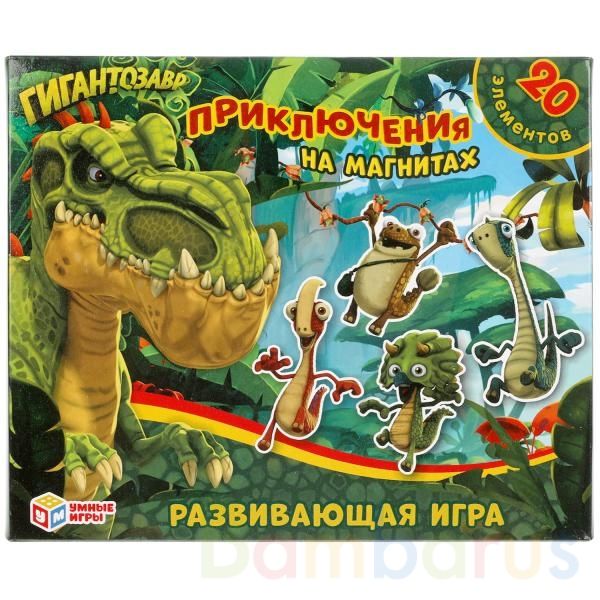 Развивающая игра на магнитах «Гигантозавр. Приключения» ТМ «Умные игры» непременно понравится маленьким поклонникам популярного мультсериала о забавных динозаврах: