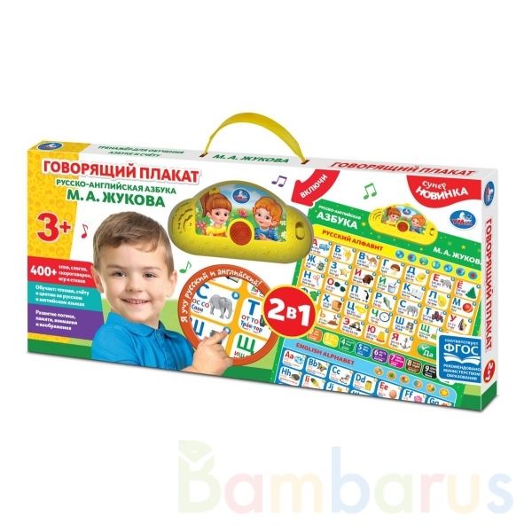 Двусторонний говорящий плакат 2 в 1 «М. А. Жукова. Русско-английская азбука» ТМ «УМка» станет прекрасным обучающим подарком для маленького любознайки: