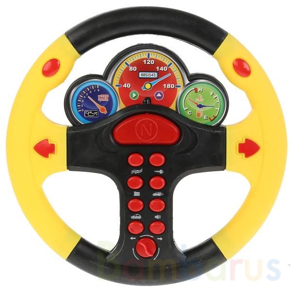 Яркий руль с разноцветными кнопками приведёт в восторг малыша. На руле присутствует реалистичное изображение спидометра. С таким рулём ребёнок сможет представить себя машинистом или водителем и отправиться в увлекательное путешествие. Компактные размеры позволяют брать игрушку с собой, в дороге будет особенно весело и интересно – малыш будет помогать «рулить» родителям. Такая игра надолго увлечёт малыша.