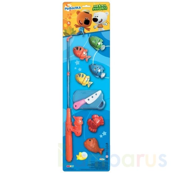Яркая и удобная удочка с катушкой, регулирующей леску, легко захватывает разноцветных рыбок. После того, как рыбка попадётся на крючок, ребёнок может «вытащить улов» и даже порезать его на разделочной доске. С таким набором здорово играть в ванной и на свежем воздухе.