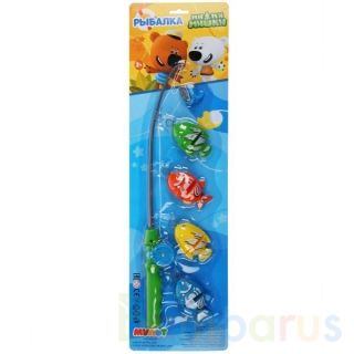 Яркая и удобная удочка с катушкой, регулирующей леску, легко захватывает разноцветных рыбок. После того, как рыбка попадётся на крючок, ребёнок может «вытащить улов». С этим набором здорово играть в ванной и на свежем воздухе.