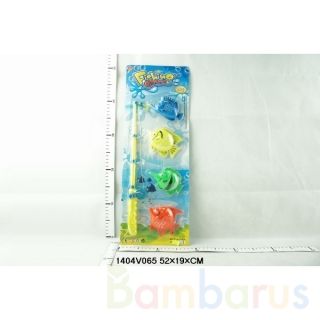 Яркая и удобная удочка с катушкой, регулирующей леску, легко захватывает разноцветных рыбок. После того, как рыбка попадётся на крючок, ребёнок может «вытащить улов». С таким набором здорово играть в ванной и на свежем воздухе.