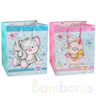 - подарочный пакет нежно-розового цвета с зайкой-девочкой