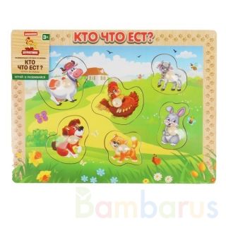 Деревянная игрушка-вкладыши «Домашние животные. Кто что ест?» ТМ «Буратино» – увлекательная и полезная игра для вашего любознайки.