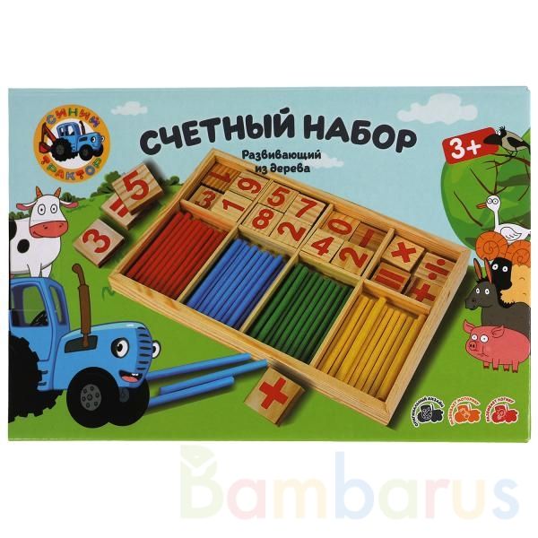 Деревянная игрушка «Синий трактор. Счётный набор» ТМ «Буратино» станет отличным развивающим подарком для маленьких поклонников мультсериала о приключениях весёлого трактора: