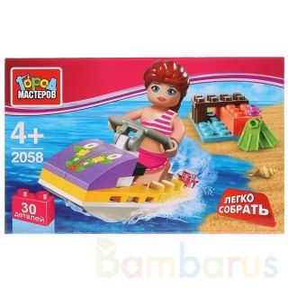 Игрушка конструктор "Город мастеров" девочка на скутере, 30 дет., цвет в ассорт. в русс. кор. в кор 80шт Конструктор для девочек "Девочка на скутере" - это новый набор ТМ "Город мастеров". В него входит 30 деталей, сделанных из прочного пластика и окрашенных в яркие цвета. Из них можно собрать водный скутер, девочку и другие предметы. Все детали прочно крепятся друг к другу. Собрав фигурки, ребёнок будет создавать различные игровые сюжеты. Набор развивает мелкую моторику, воображение, усидчивость, объясняет понятия "форма, цвет, объём", улучшает пространственное мышление. Рекомендуется детям от 4 лет.