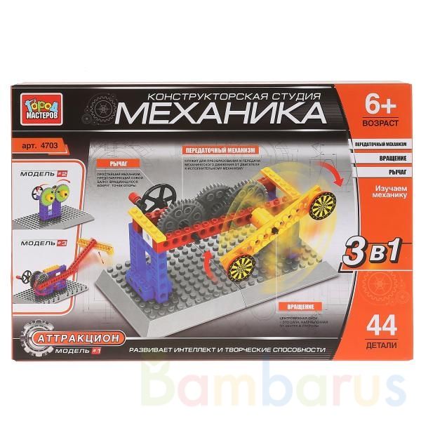 Конструктор "Механика: аттракцион" 3 в 1 - это новый уникальный набор ТМ "Город мастеров". В него входит рычаг, передаточный механизм и другие мелкие детали. Они необходимы, чтобы собрать аттракцион или другие модели и показать ребёнку работу механического механизма. Всего в наборе 44 детали. Разви…