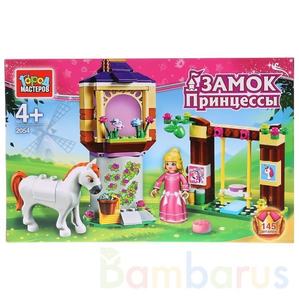 Игрушка конструктор "Город мастеров" замок принцессы, с фигурками, 145 дет., цвет в ассорт. в русс. кор. в кор 36шт Конструктор для девочек "Замок принцессы" - это новый набор ТМ "Город мастеров". В него входит 145 деталей, сделанных из прочного пластика и окрашенных в яркие цвета. Из них можно собрать башню замка, качели, принцессу и коня. Все детали прочно крепятся друг к другу. Собрав фигурки, ребёнок будет создавать различные игровые сюжеты. Набор развивает мелкую моторику, воображение, усидчивость, объясняет понятия "форма, цвет, объём", улучшает пространственное мышление. Рекомендуется детям от 4 лет.