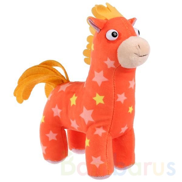 Милая ярко-оранжевая лошадка с весёлым принтом из звёздочек сразу понравится ребёнку, ведь с ней он сможет придумать множество интересных игр. С уже знакомым и любимым персонажем из мультфильма ребёнку будет интересно и весело играть. Способствует развитию социально-коммуникативных навыков, речи, фантазии и воображения.