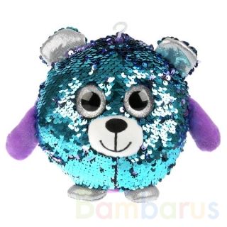 Игрушку приятно обнимать, ведь она такая милая. Мишка покрыт блестящими цветными пайетками, которые красиво переливаются и меняют цвет в зависимости от положения стороны пайеток. Играя, малыш научится проявлять заботу о своём мягком друге. Игрушку удобно брать в гости, на прогулки и в поездки.