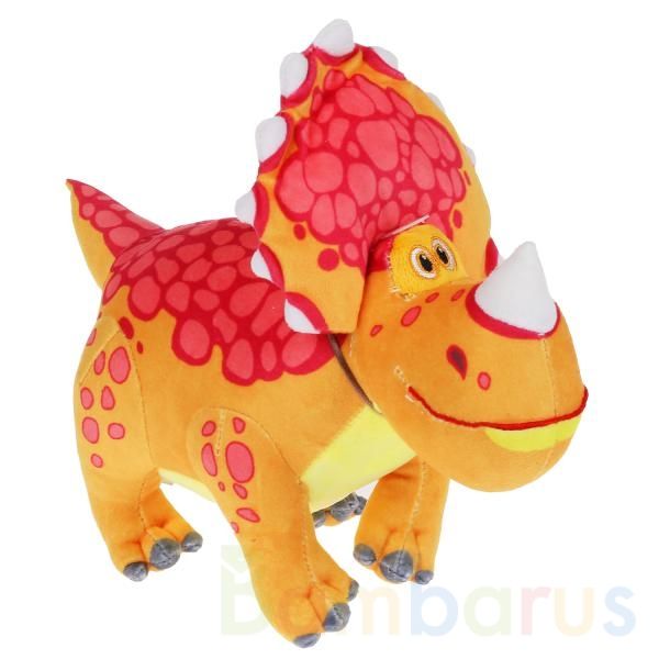 Трицератопс Буль - самый рассудительный и главный среди всех турбозавров, у него интересная расцветка оранжевого цвета с красными пятнышками и белый рог на носу. С этой очень мягкой на ощупь игрушкой ребёнок может воссоздать уже знакомые по мультфильму сюжеты или придумать новые. При нажатии на звуковую кнопку игрушка воспроизводит песенку из мультфильма. Мило улыбающийся турбозавр Буль станет малышу добрым другом, которого можно взять с собой на прогулку или в поездку.