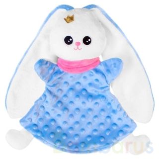Очаровательный голубой зайка так мечтает о тепле и любви… Он с удовольствием станет любимой игрушкой – и для вас, и для ребёнка.На шее зайчика украшение в виде милого розового шарфика, а его голову венчает маленькая золотая корона. Это принц среди зайцев!Зайчик сделан из специальной ткани и очень п…