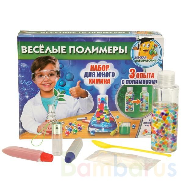 Новый набор опытов "Весёлые полимеры" ТМ "Играем вместе" позволит лучше понять, как устроен мир. В него входит всё необходимое, чтобы узнать, почему полимерный шарик в воде увеличивается в размере, а детский подгузник, впитывая влагу, остается сухим; как освежителю воздуха удается так долго источать аромат и ответить на другие вопросы. Проведя этот опыт, ребёнок узнает, что такое полимеры и каковы их свойства. Рекомендуется детям от 6 лет.