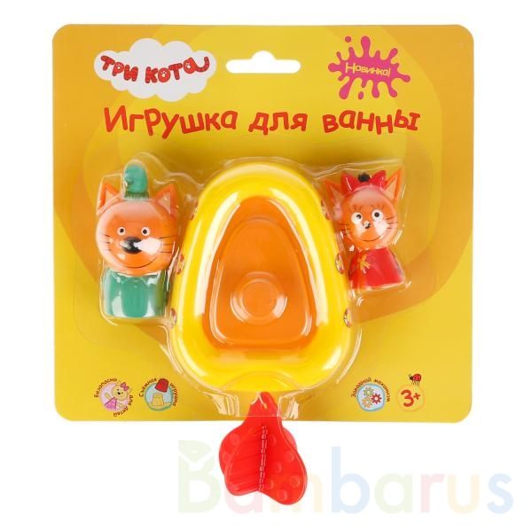 Игрушка-пластизоль для ванны «Три кота. Компот и Карамелька» ТМ «Капитошка» – это сразу 3 в 1: