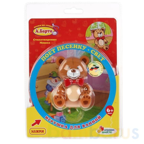 ИГРУШКА ПВХ "ИГРАЕМ ВМЕСТЕ" МИШКА, СВЕТ+ЗВУК НА БЛИСТЕРЕ (РУСС. УП.) в кор.6*12шт Замечательная и яркая игрушка для купания. Красочная фигурка Мишки доставит ребенку много положительных эмоций в процессе купания. Фигурка мягкая и легкая, Ваш малыш с удовольствием будет с ними не только купаться, но и играть. Игрушка оснащена световыми и звуковыми эффектами, которые активируются при замыкании контактов на нижней игрушки пальцем или при опускании в воду. Сделаны из безопасного ПВХ. Развивает мелкую моторику, цветовосприятие. Рекомендовано детям от 6 месяцев.