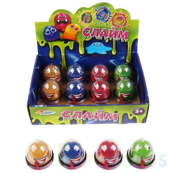 Слаймы давно полюбились детям всех возрастов своими необычными свойствами, которые отлично подходят для розыгрышей. Слайм «Слайм с глазами» ТМ «Играем вместе» порадует юного исследователя пластичной яркой массой и с глазками. Приятный на ощупь полимерный лизун можно растягивать, мять, тянуть, жать, не боясь повредить его. Если приложить лизуна к стене, то он начнёт медленно стекать вниз.