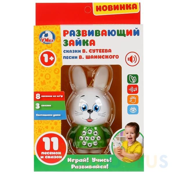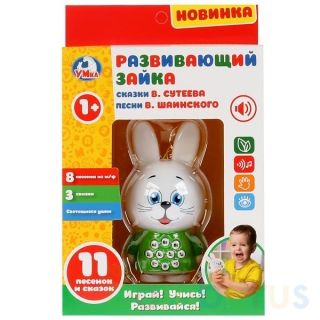 Музыкальная игрушка «Развивающий зайка» ТМ «УМка» станет прекрасным подарком для малыша:- 3 сказки В. Сутеева: «Яблоко», «Мешок яблок», «Палочка-выручалочка»- 8 песен В. Шаинского из м/ф (фрагменты): «От улыбки», «Облака», «Дорога» из м/ф «По дороге с облаками», «Песенка друзей», «Весёлая карусель»…