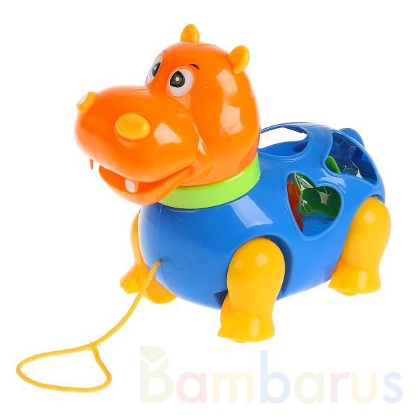 Звук от фигурок внутри бегемотика заинтересует ребёнка, тем самым стимулируя малыша к двигательной активности. А сортируя яркие фигурки по специальным отверстиям, ребёнок будет изучать формы, развивать мелкую моторику, логику и цветовое восприятие.