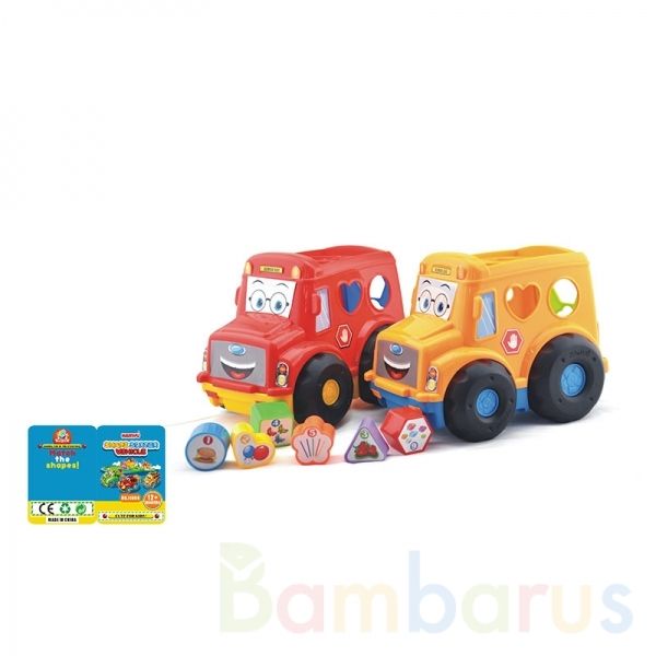 С такой игрушкой главная задача малыша правильно подобрать блок сортера к соответствующему отверстию - подсказкой будет форма блока. Благодаря подвижным колёсам, с машинкой можно играть как с каталкой.