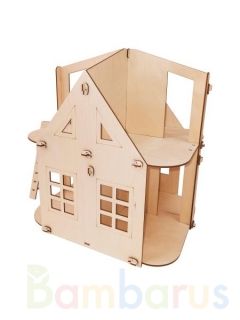 Из входящих в данный набор деталей ребёнок сможет собрать двухэтажный кукольный домик, состоящий из 4-х комнат, с лестницей на второй этаж. Все элементы конструктора отшлифованы и безопасны для детей. При желании площадку можно разукрасить с помощью разноцветных красок - акриловых или гуаши.