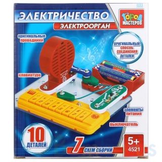 - В набор входит 10 деталей, собрав которые, ребёнок поймёт схему работы электрооргана!