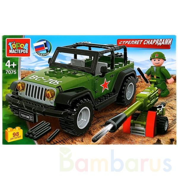 Конструктор «Джип с пушкой» из серии «Армия» ТМ «Город мастеров» обязательно понравится маленькому герою.