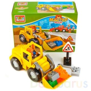КОНСТРУКТОР "ГОРОД МАСТЕРОВ" БОЛЬШИЕ КУБИКИ: БУЛЬДОЗЕР, С ФИГУРКОЙ В РУСС. КОР. в кор.36шт Конструктор "Большие кубики: бульдозер" совмещает в себе две функции: ребёнок строит модель бульдозера и играет с ней, моделируя разные сюжеты. В наборе представлено 13 деталей ярких цветов, окрашенных стойкими к истиранию безопасными красителями и оснащённых удобными блочными креплениями. В набор входят фигурка рабочего и дорожные знаки, которые делают игру интереснее и реалистичнее. Конструктор сделан из прочного, безопасного, яркого пластика. Развивает фантазию, усидчивость и мелкую моторику рук. Совместим с моделями конструкторов мировых производителей. Рекомендовано детям старше 3-х лет.
