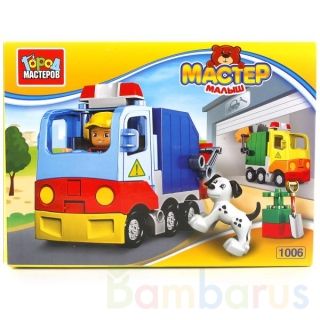 КОНСТРУКТОР "ГОРОД МАСТЕРОВ" БОЛЬШИЕ КУБИКИ: МУСОРОВОЗ, С ФИГУРКОЙ И АКСЕСС. В РУСС. КОР. в кор.36шт Конструктор "Большие кубики: мусоровоз" совмещает в себе две функции: ребёнок строит модель мусоровоза и играет с ней, моделируя разные сюжеты. В наборе представлено 13 деталей ярких цветов, окрашенных стойкими к истиранию безопасными красителями и оснащённых удобными блочными креплениями. В набор входят фигурки рабочего и собачки-далматинца, которые делают игру интереснее и реалистичнее. Конструктор сделан из прочного, безопасного, яркого пластика. Развивает фантазию, усидчивость и мелкую моторику рук. Совместим с моделями конструкторов мировых производителей. Рекомендовано детям старше 3-х лет.