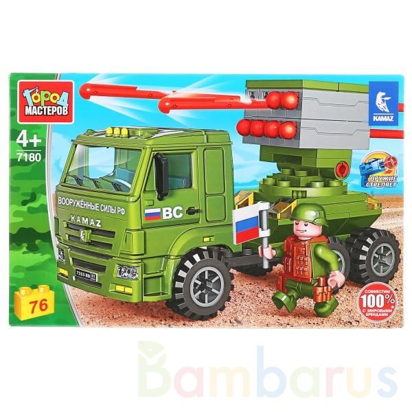 Конструктор «КАМАЗ: стреляет ракетами» из серии «Армия» ТМ «Город мастеров» с фигуркой вдохновит детей на новые сюжеты для игр. Собери боевую машину и отправляйся на спецзадание. Набор станет гордостью игрушечной коллекции ребёнка.Особенности и функции:- в комплекте 76 деталей- фигурка- оружие стре…