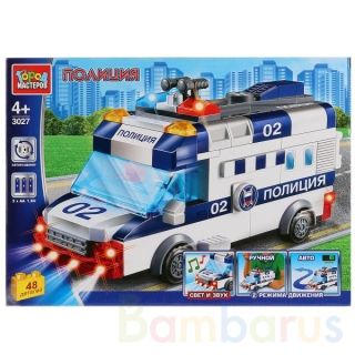 Новинка! Конструктор «Полицейская машина» ТМ «Город мастеров» поможет разнообразить игры детей. Собери яркую полицейскую машину со световыми, звуковыми эффектами и мотором и спеши на помощь! Получившаяся игрушка станет гордостью игрушечной коллекции ребёнка. - в комплекте 48 деталей- 2 режима движе…