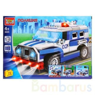Новинка! Конструктор «Полицейская машина» ТМ «Город мастеров» поможет разнообразить игры детей. Собери яркую полицейскую машину со световыми, звуковыми эффектами и мотором и спеши на помощь! Получившаяся игрушка станет гордостью игрушечной коллекции ребёнка. - в комплекте 72 детали- 2 режима движен…