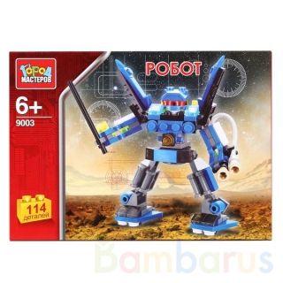 Конструктор ТМ "Город мастеров" из серии "Роботы" обязательно понравится вашему мальчику. Все детали изготовлены из яркого пластика высокого качества, всего в наборе 114 элементов. Из них можно собрать боевого робота с мечом или придумать другого персонажа. В процессе сборки и игры ребенок развивает усидчивость, мелкую моторику рук, фантазию. Рекомендовано детям старше 6-ти лет. Совместим с моделями конструкторов мировых производителей.