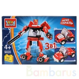 Конструктор из новой серии "Легко собрать" - это игрушка 3 в 1. В набор входит 77 деталей, выполненных из прочной пластмассы. Они окрашены в красный, серый и чёрный цвета безопасным составом и прочно соединяются между собой. Из деталей можно собрать 1 робота и 2 разных машинки, чтобы играть с ними …