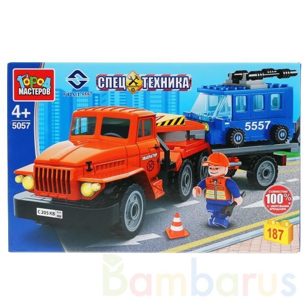 Конструктор «Урал-перевозчик с троллейбусом» из серии «Спецтехника» ТМ «Город мастеров» с фигуркой вдохновит детей на новые сюжеты для игр. Набор станет гордостью игрушечной коллекции ребёнка.