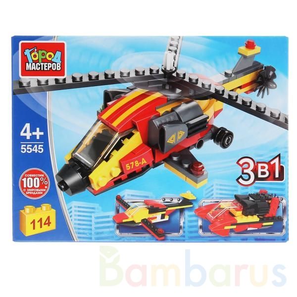 Конструктор «Вертолет 3 в 1» ТМ «Город мастеров» вдохновит малыша на новые сюжеты для игр и станет гордостью игрушечной коллекции ребёнка. С помощью данного набора можно собрать три варианта игрушки: вертолет, самолет или батискаф.