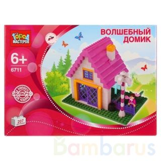 КОНСТРУКТОР "ГОРОД МАСТЕРОВ" ВОЛШЕБНЫЙ ДОМИК В РУСС. КОР. в кор.16шт Из 207 пластиковых деталей данного конструктора можно собрать замечательный волшебный домик. Конструирование увлечёт любую девочку, а собрав этот чудесный дом, она сможет играть в любые сказочные сюжеты. Конструктор развивает мелкую моторику рук, фантазию и усидчивость. Рекомендовано для детей от 6-ти лет. Совместим с моделями конструкторов мировых производителей.