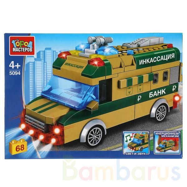 Конструктор «Инкассаторская машина» ТМ «Город мастеров» станет прекрасным подарком для ребёнка.Особенности и комплектация:- 68 деталей- звуковое сопровождение- световые эффекты- инерционный механизм (поставьте машинку на ровную поверхность, потяните за корпус назад, отпустите – и она тут же поедет …