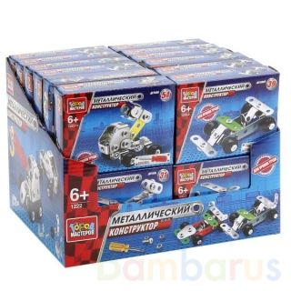 КОНСТРУКТОР МЕТАЛЛ. "ГОРОД МАСТЕРОВ" В АССОРТ. В КОР. В ДИСПЛЕЕ (РУСС. УП.) УП-24ШТ в кор.6уп Набор металлических конструкторов от ТМ "Город Мастеров" станет отличным подарком для ребенка. Из них детям предлагается собрать модели гоночных автомобилей, для удобства сборки в комплекте идёт отвёртка. Полученными игрушками ребенок сможет играть, потому что у машинок подвижные колеса. Следуя приложенной схеме-инструкции, применив смекалку и терпение, ребенок увлекательно и полезно проведет время, развивая фантазию, глазомер и пространственное мышление. Предназначено для уроков труда и домашнего досуга. Рекомендовано детям старше 6-ти лет.