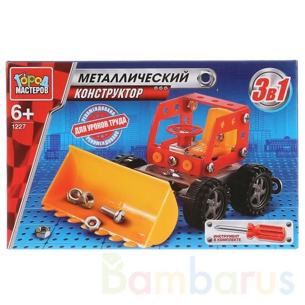 Конструктор металлический "Город мастеров" 3в1: грузовик, экскаватор, бульдозер в русс. кор. в кор.80шт Металлический конструктор ТМ "Город мастеров" представляет собой уникальную игрушку, которая может передаваться от родителей к детям и никогда не перестанет быть актуальной. В набор "3 в 1: грузовик, экскаватор, бульдозер" входит комплект деталей и отвёрточка, которой нужно их соединять. Элементы выполнены из прочного, лёгкого металла и окрашены в яркие цвета. Из них ребёнок соберёт грузовик, экскаватор или бульдозер с подвижными частями, сможет играть с ними или поставить в коллекцию. Набор подходит для уроков труда и домашнего моделирования. Развивает усидчивость, логику, пространственное и творческое мышление, мелкую моторику. Рекомендуется детям от 6 лет.
