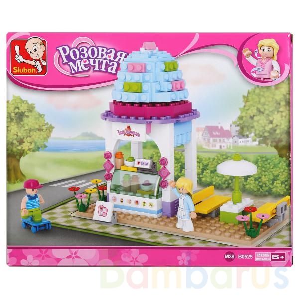 Конструктор «Магазин мороженого» с фигурками:- в комплекте 205 деталей- 2 фигурки (продавец и покупатель)- все детали легко и плотно соединяются между собойТакой магазин с витриной, столиком, цветами и другими аксессуарами непременно понравится малышке. Ребёнок сможет придумать и воссоздать разнооб…