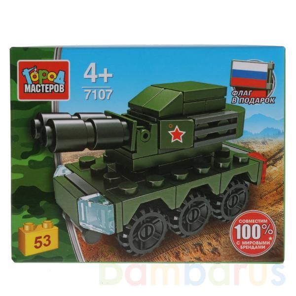 Конструктор «Танк» из серии «Армия» ТМ «Город мастеров» вдохновит детей на новые сюжеты для игр. Собери танк с пулемётом, посади в него военного и отправляйся на спецзадание. Набор станет гордостью игрушечной коллекции ребёнка.Особенности и функции:- в комплекте 53 детали- флаг в подарок- все детал…