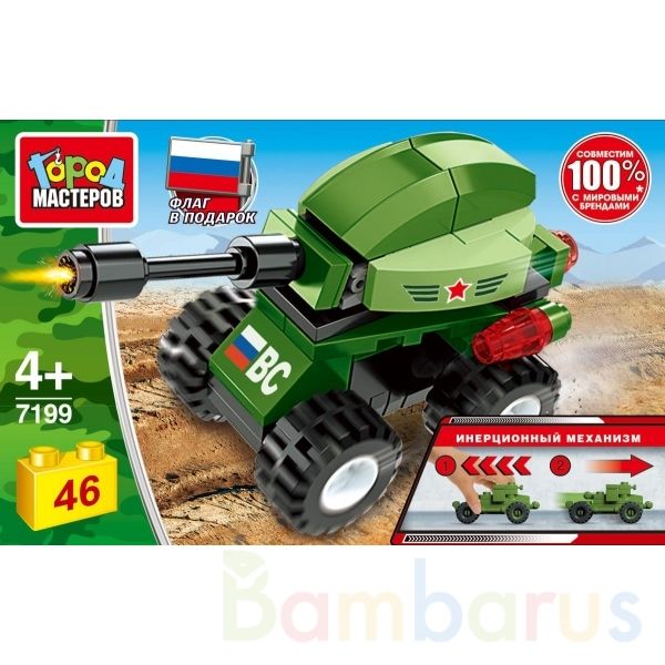 Конструктор «Танк» ТМ «Город мастеров» понравится маленьким героям.Особенности и комплектация:- 46 деталей- флаг в подарок- инерционный механизм (поставьте танк на ровную поверхность, потяните за корпус назад, отпустите - и он тут же поедет вперёд)- совместим с моделями конструкторов мировых брендо…