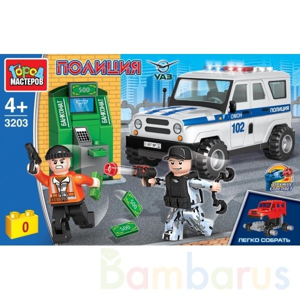Конструктор «УАЗ Hunter. Ограбление банкомата» ТМ «Город мастеров» понравится маленьким защитникам правопорядка.